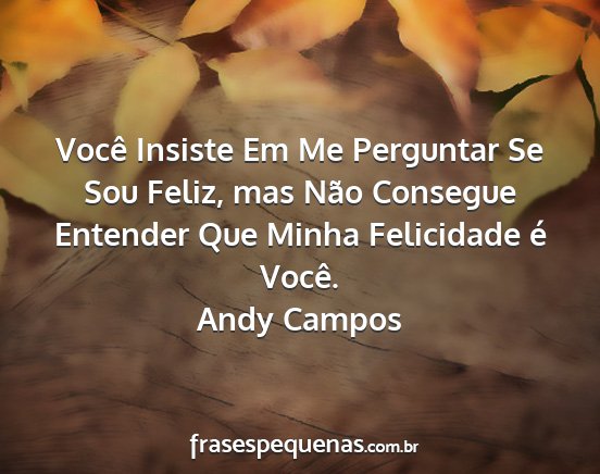 Você Insiste Em Me Perguntar Se Sou Feliz, mas Não Consegue Entender Que Minha Felicidade é Você.Andy Campos