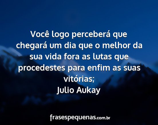 Você logo perceberá que chegará um dia que o melhor da sua vida fora as lutas que procedestes para enfim as suas vitórias;Julio Aukay