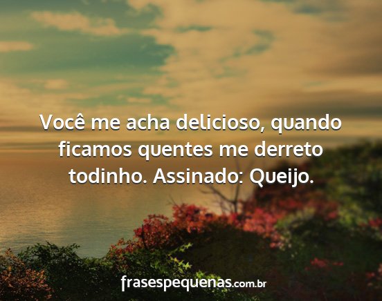 Você me acha delicioso, quando ficamos quentes me derreto todinho. Assinado: Queijo.