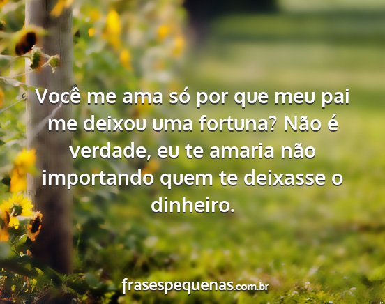 Você me ama só por que meu pai me deixou uma fortuna? Não é verdade, eu te amaria não importando quem te deixasse o dinheiro.