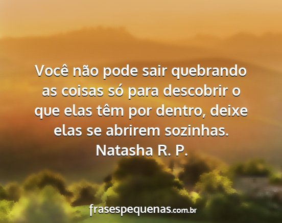 Você não pode sair quebrando as coisas só para descobrir o que elas têm por dentro, deixe elas se abrirem sozinhas.Natasha R. P.