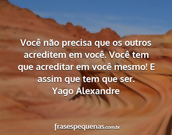 Você não precisa que os outros acreditem em você. Você tem que acreditar em você mesmo! E assim que tem que ser.Yago Alexandre