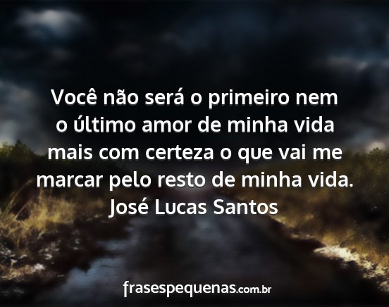 Você não será o primeiro nem o último amor de minha vida mais com certeza o que vai me marcar pelo resto de minha vida.José Lucas Santos