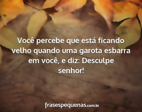 Você percebe que está ficando velho quando uma garota esbarra em você, e diz: Desculpe senhor!