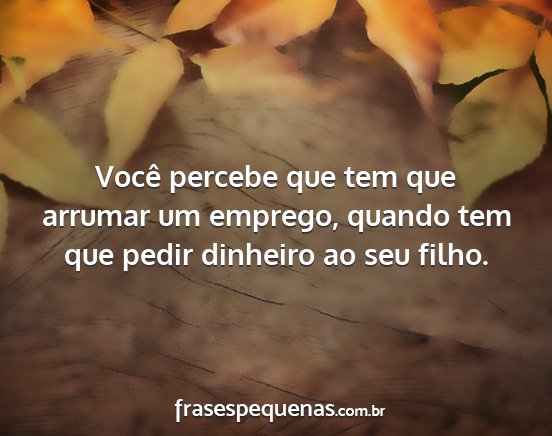 Você percebe que tem que arrumar um emprego, quando tem que pedir dinheiro ao seu filho.