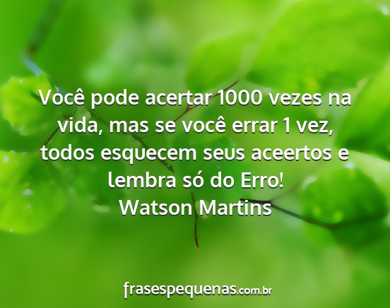 Você pode acertar 1000 vezes na vida, mas se você errar 1 vez, todos esquecem seus aceertos e lembra só do Erro!Watson Martins