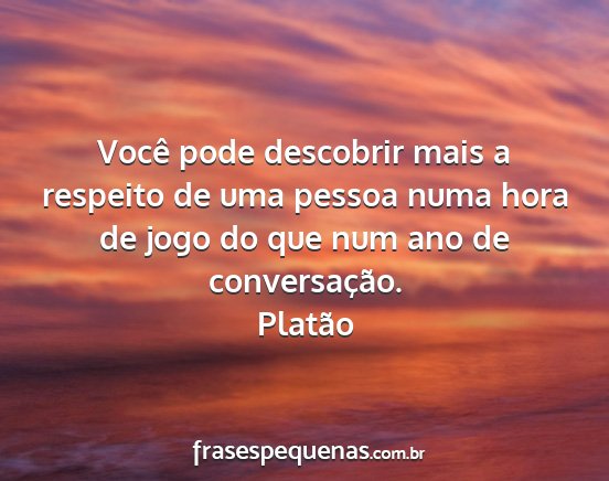 Você pode descobrir mais a respeito de uma pessoa numa hora de jogo do que num ano de conversação.Platão