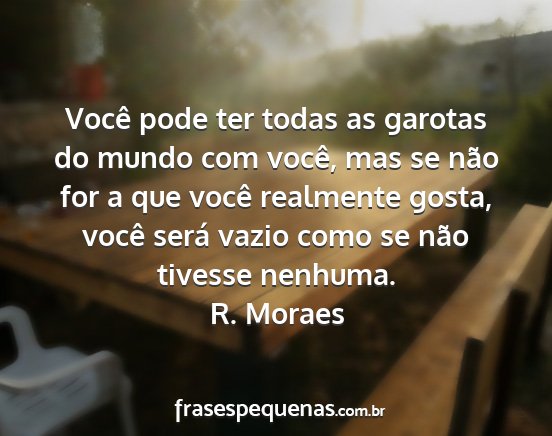 Você pode ter todas as garotas do mundo com você, mas se não for a que você realmente gosta, você será vazio como se não tivesse nenhuma.R. Moraes