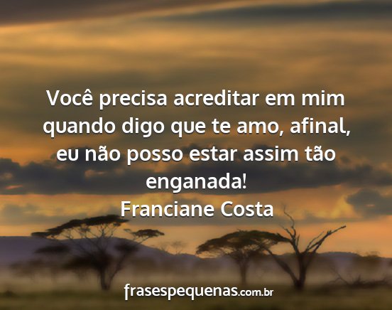 Você precisa acreditar em mim quando digo que te amo, afinal, eu não posso estar assim tão enganada!Franciane Costa