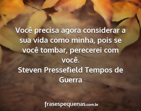 Você precisa agora considerar a sua vida como minha, pois se você tombar, perecerei com você.Steven Pressefield Tempos de Guerra