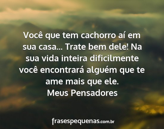 Você que tem cachorro aí em sua casa... Trate bem dele! Na sua vida inteira dificilmente você encontrará alguém que te ame mais que ele.Meus Pensadores