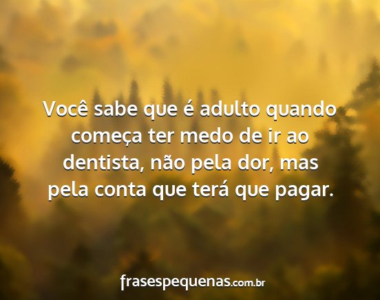 Você sabe que é adulto quando começa ter medo de ir ao dentista, não pela dor, mas pela conta que terá que pagar.