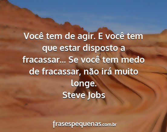 Você tem de agir. E você tem que estar disposto a fracassar... Se você tem medo de fracassar, não irá muito longe.Steve Jobs