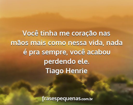 Você tinha me coração nas mãos mais como nessa vida, nada é pra sempre, você acabou perdendo ele.Tiago Henrie