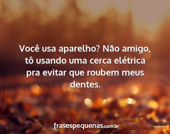 Você usa aparelho? Não amigo, tô usando uma cerca elétrica pra evitar que roubem meus dentes.