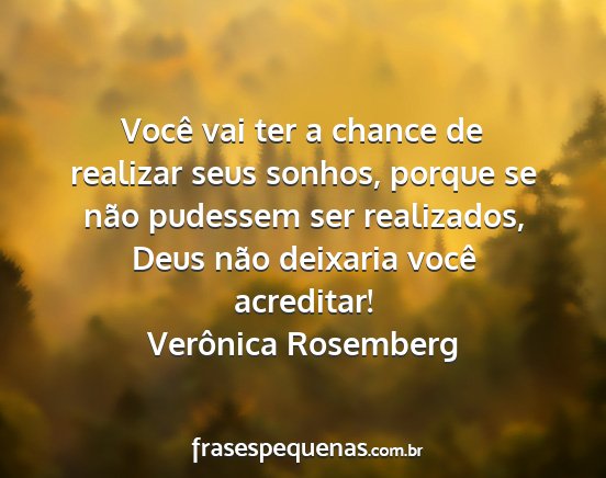 Você vai ter a chance de realizar seus sonhos, porque se não pudessem ser realizados, Deus não deixaria você acreditar!Verônica Rosemberg