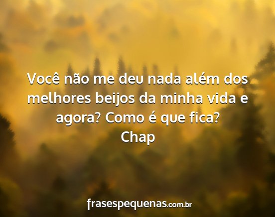 Você não me deu nada além dos melhores beijos da minha vida e agora? Como é que fica?