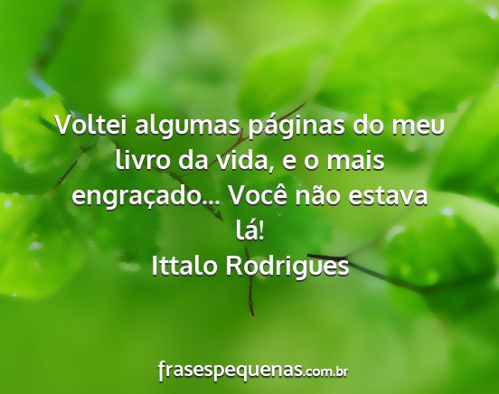 Voltei algumas páginas do meu livro da vida, e o mais engraçado... Você não estava lá!Ittalo Rodrigues