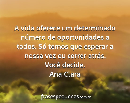 A vida oferece um determinado número de oportunidades a todos. Só temos que esperar a nossa vez ou correr atrás. Você decide.Ana Clara