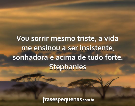 Vou sorrir mesmo triste, a vida me ensinou a ser insistente, sonhadora e acima de tudo forte.Stephanies