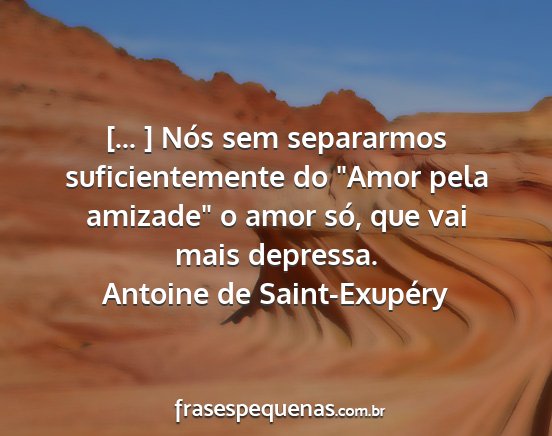[... ] Nós sem separarmos suficientemente do "Amor pela amizade" o amor só, que vai mais depressa.Antoine de Saint-Exupéry