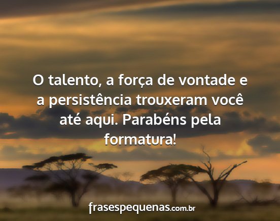 O talento, a força de vontade e a persistência trouxeram você até aqui. Parabéns pela formatura!