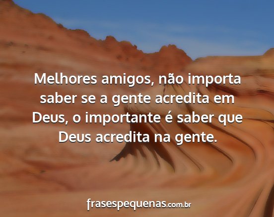 Melhores amigos, não importa saber se a gente acredita em Deus, o importante é saber que Deus acredita na gente.