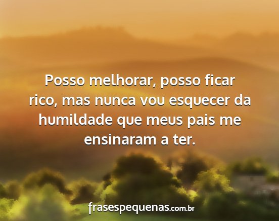 Posso melhorar, posso ficar rico, mas nunca vou esquecer da humildade que meus pais me ensinaram a ter.