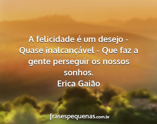 A felicidade é um desejo - Quase inalcançável - Que faz a gente perseguir os nossos sonhos.Erica Gaião
