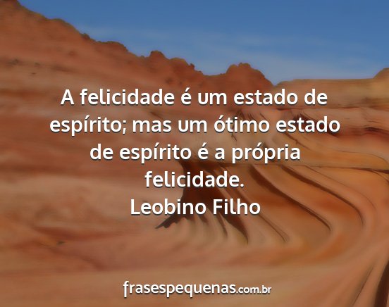 A felicidade é um estado de espírito; mas um ótimo estado de espírito é a própria felicidade.Leobino Filho