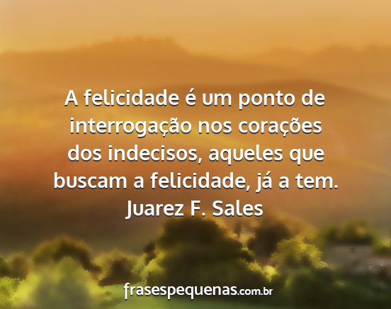 A felicidade é um ponto de interrogação nos corações dos indecisos, aqueles que buscam a felicidade, já a tem.Juarez F. Sales