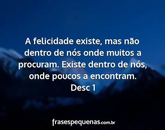 A felicidade existe, mas não dentro de nós onde muitos a procuram. Existe dentro de nós, onde poucos a encontram.Desc 1