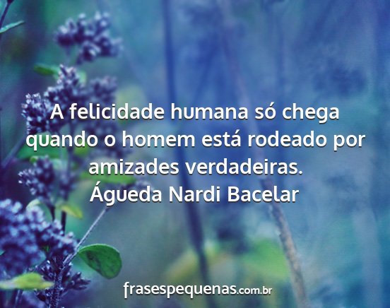 A felicidade humana só chega quando o homem está rodeado por amizades verdadeiras.Águeda Nardi Bacelar