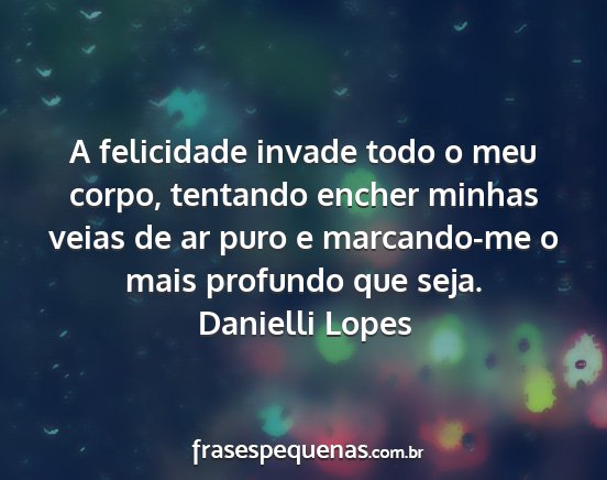 A felicidade invade todo o meu corpo, tentando encher minhas veias de ar puro e marcando-me o mais profundo que seja.Danielli Lopes