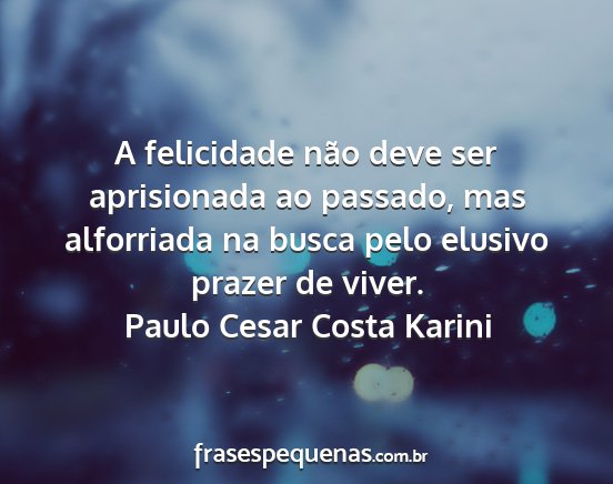 A felicidade não deve ser aprisionada ao passado, mas alforriada na busca pelo elusivo prazer de viver.Paulo Cesar Costa Karini