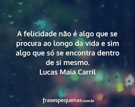 A felicidade não é algo que se procura ao longo da vida e sim algo que só se encontra dentro de si mesmo.Lucas Maia Carril