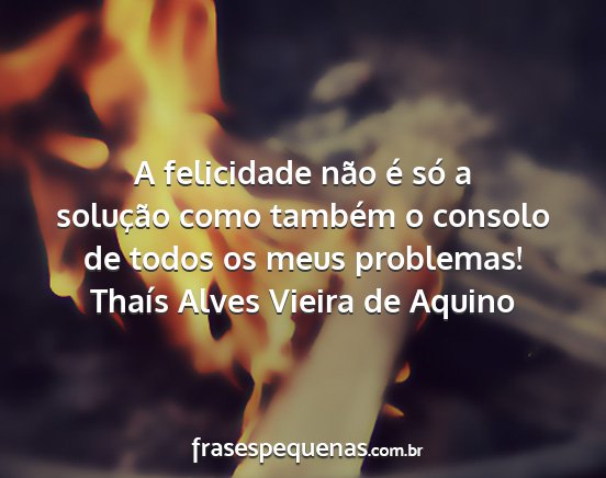 A felicidade não é só a solução como também o consolo de todos os meus problemas!Thaís Alves Vieira de Aquino