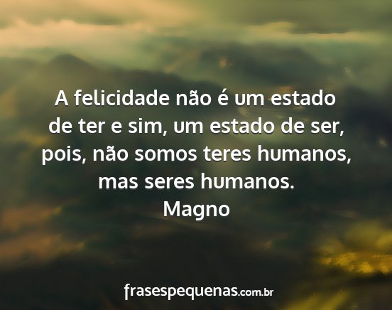 A felicidade não é um estado de ter e sim, um estado de ser, pois, não somos teres humanos, mas seres humanos.Magno
