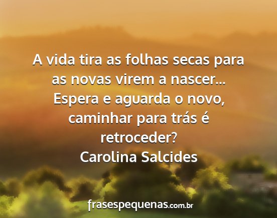A vida tira as folhas secas para as novas virem a nascer... Espera e aguarda o novo, caminhar para trás é retroceder?Carolina Salcides