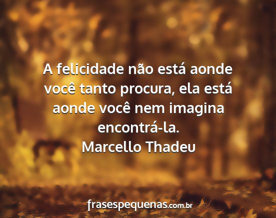 A felicidade não está aonde você tanto procura, ela está aonde você nem imagina encontrá-la.Marcello Thadeu