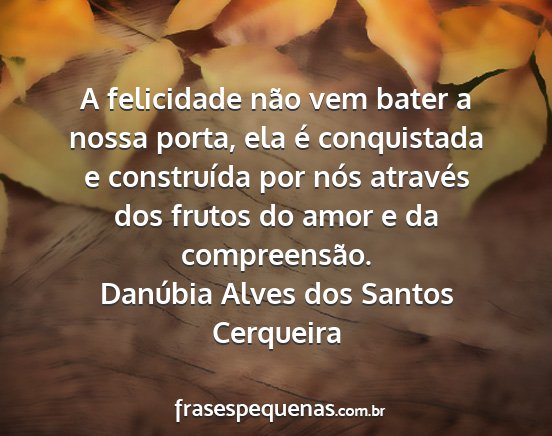 A felicidade não vem bater a nossa porta, ela é conquistada e construída por nós através dos frutos do amor e da compreensão.Danúbia Alves dos Santos Cerqueira