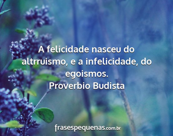 A felicidade nasceu do altrruismo, e a infelicidade, do egoismos.