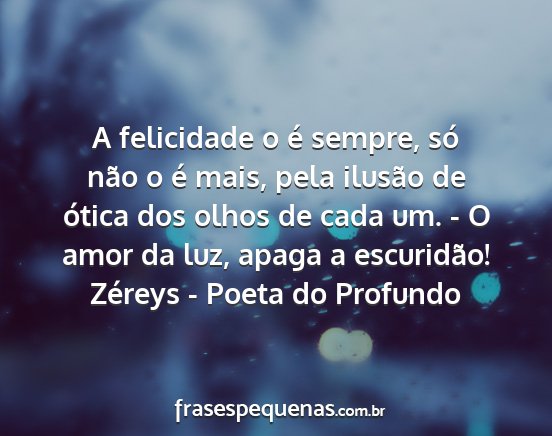 A felicidade o é sempre, só não o é mais, pela ilusão de ótica dos olhos de cada um. - O amor da luz, apaga a escuridão!Zéreys - Poeta do Profundo