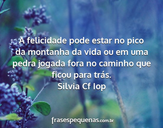 A felicidade pode estar no pico da montanha da vida ou em uma pedra jogada fora no caminho que ficou para trás.Silvia Cf Iop