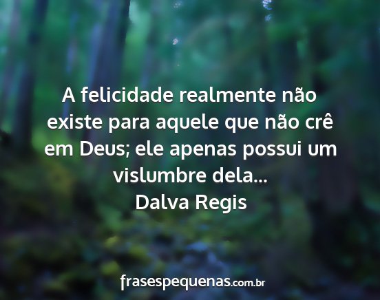 A felicidade realmente não existe para aquele que não crê em Deus; ele apenas possui um vislumbre dela...Dalva Regis