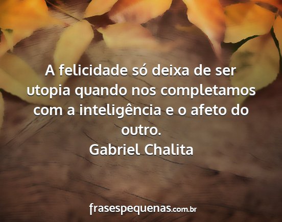 A felicidade só deixa de ser utopia quando nos completamos com a inteligência e o afeto do outro.Gabriel Chalita