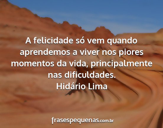 A felicidade só vem quando aprendemos a viver nos piores momentos da vida, principalmente nas dificuldades.Hidário Lima