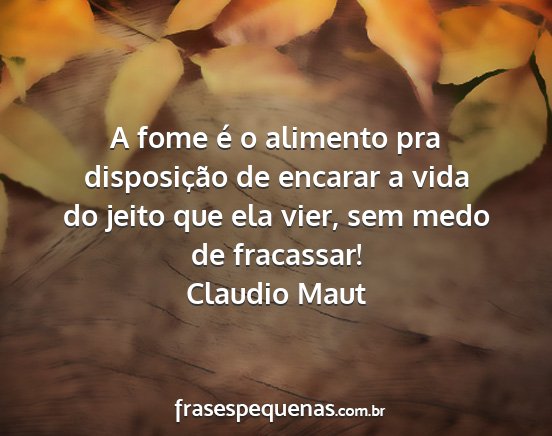 A fome é o alimento pra disposição de encarar a vida do jeito que ela vier, sem medo de fracassar!Claudio Maut