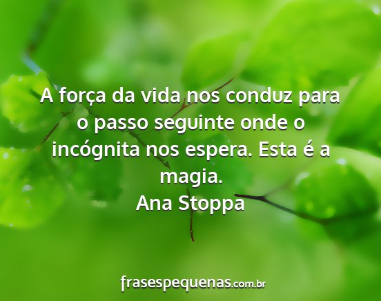 A força da vida nos conduz para o passo seguinte onde o incógnita nos espera. Esta é a magia.Ana Stoppa