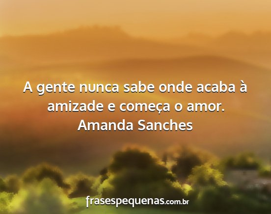 A gente nunca sabe onde acaba à amizade e começa o amor.